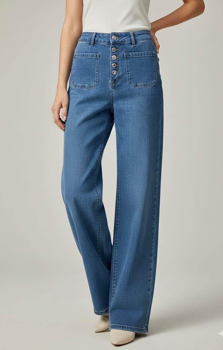 Affirmez votre style avec ce jean large tendance, distingué par ses 5 boutons originaux.
